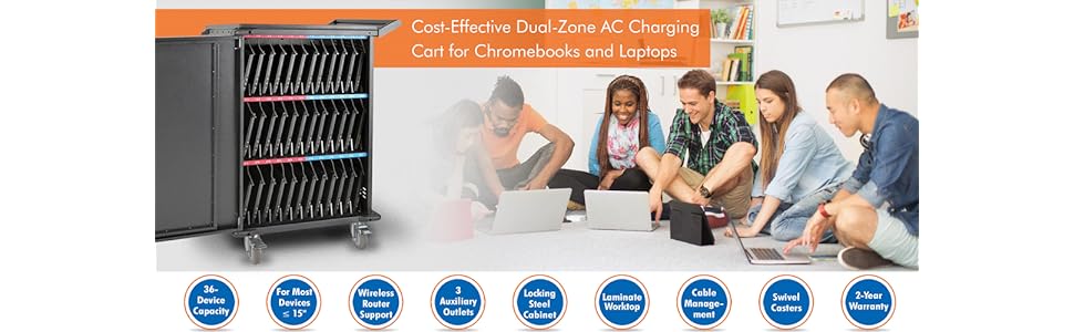 Versatile features help you meet the challenge of managing up to 36 Chromebooks, laptops or tablets in limited space.