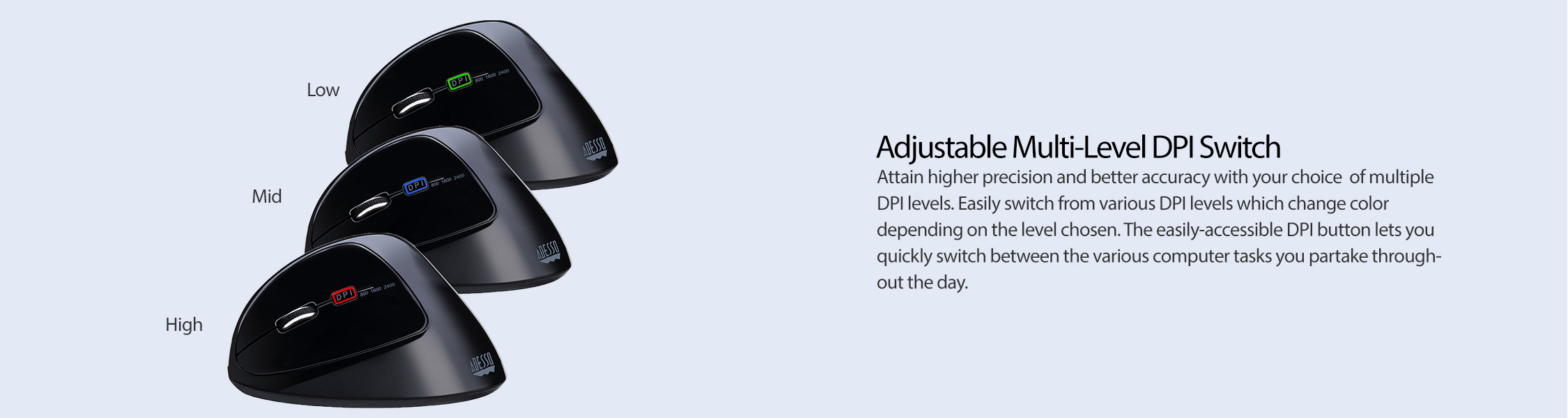 Normally, your forearm muscles are twisted from sitting flat on the supporting surface when using a regular mouse. This “flat position” causes strains on your muscles and leads to wrist pains. This is where the Adesso Vertical Mice become helpful and provide alleviation.