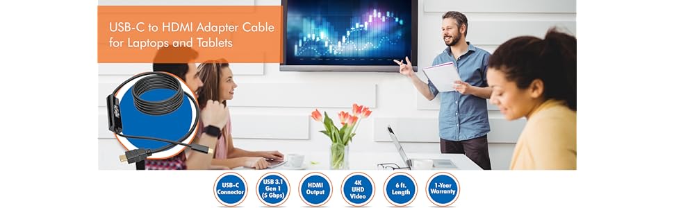 Newer tablets, laptops, Chromebook and MacBook notebooks and even desktop computers often have one or more USB-C (USB Type-C) ports, but come equipped with few others. Tripp Lite’s USB-C to HDMI Adapter Cable directly connects a video source that supports USB DisplayPort Alternate Mode (Alt Mode) to your existing HDMI television, monitor or projector. From a USB-C (or Thunderbolt 3) port on your device, you can: