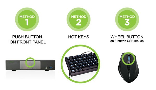 Avoid unplugging and plugging USB peripherals and audio devices between your two computers. Share your peripherals with the push of a button and forget about purchasing additional keyboards, mice, monitors, hard drives, flash drives, printers and more. Additionally, straight forward firmware update eliminates the need to purchase upgraded KVMP switches.