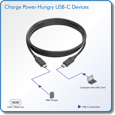 This powerful USB-C cable charges power-hungry mobile devices in less time than a standard cable. It also supports USB 2.0 data transfer speeds up to 480 Mbps.