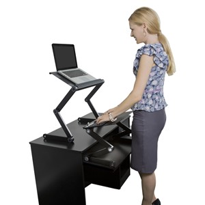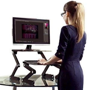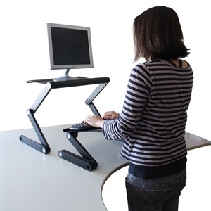 Convert your desk to standing! Two separate aluminum stands rest on top of any table creating a completely adjustable, ergonomic standing workspace. Optimizes your workplace ergonomics and posture by properly positioning screens at eye-level and keyboards at elbow-height.