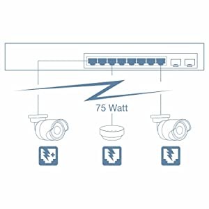PoE PowerA 75W PoE power budget supplies up to eight Power over Ethernet devices. |