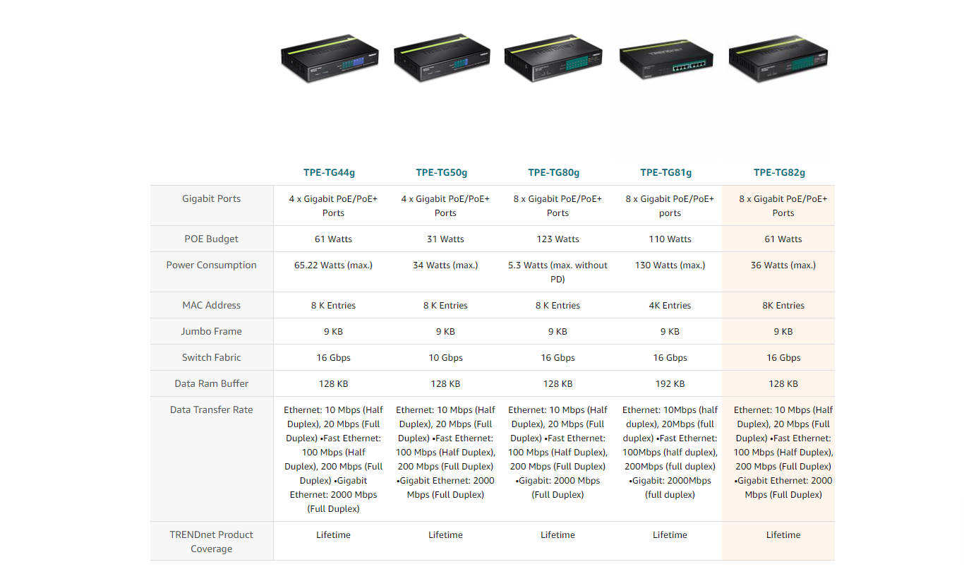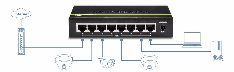 PoE PowerA 61W PoE power budget supports up to eight Power over Ethernet devices. |