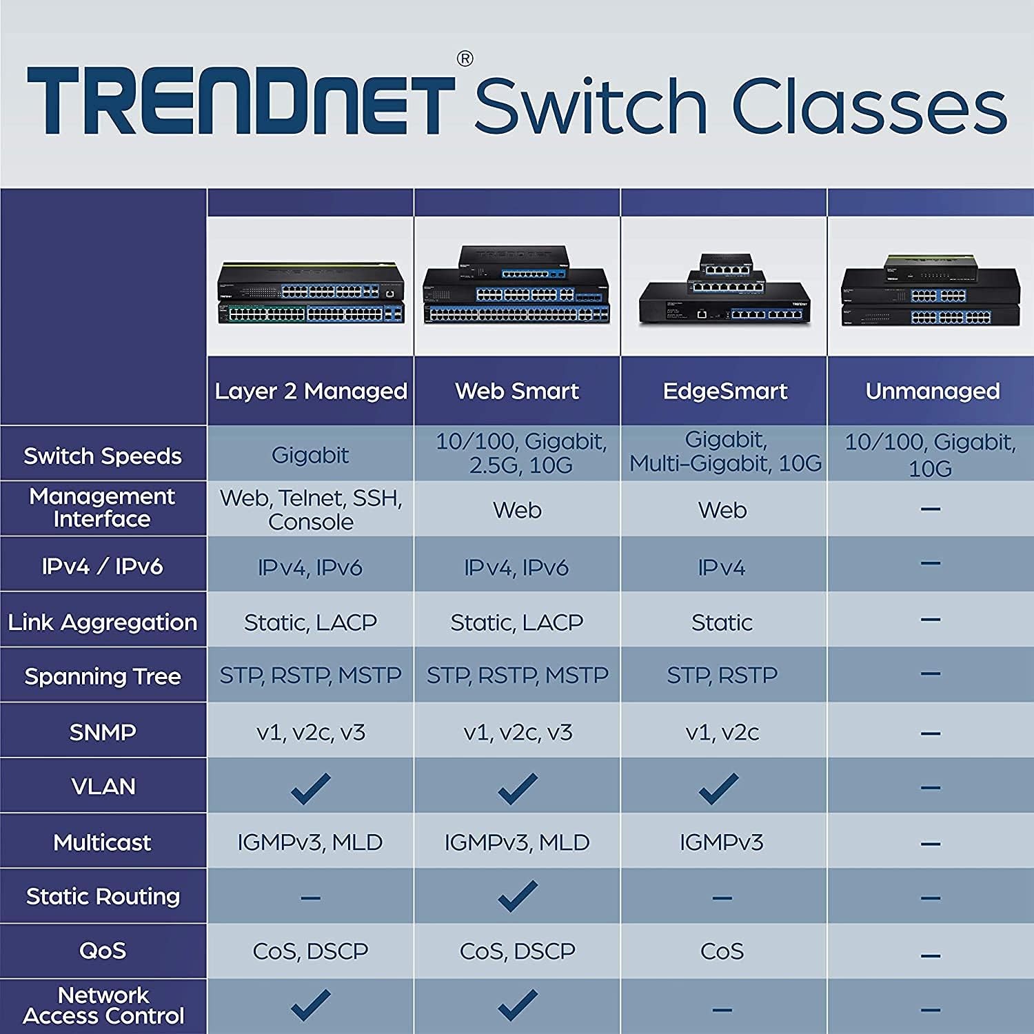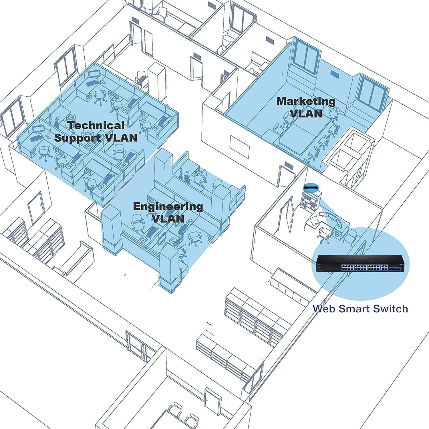 TRENDnet’s 28-Port Gigabit Web Smart Switch, model TEG-284WS, is a cost-effective switch solution for high-speed gigabit applications. Advanced traffic management, access management controls, trouble shooting, and monitoring protocol support makes this a powerful backbone solution for SMB networks. The web-based management interface offers features for traffic control, troubleshooting, access controls, and monitoring.