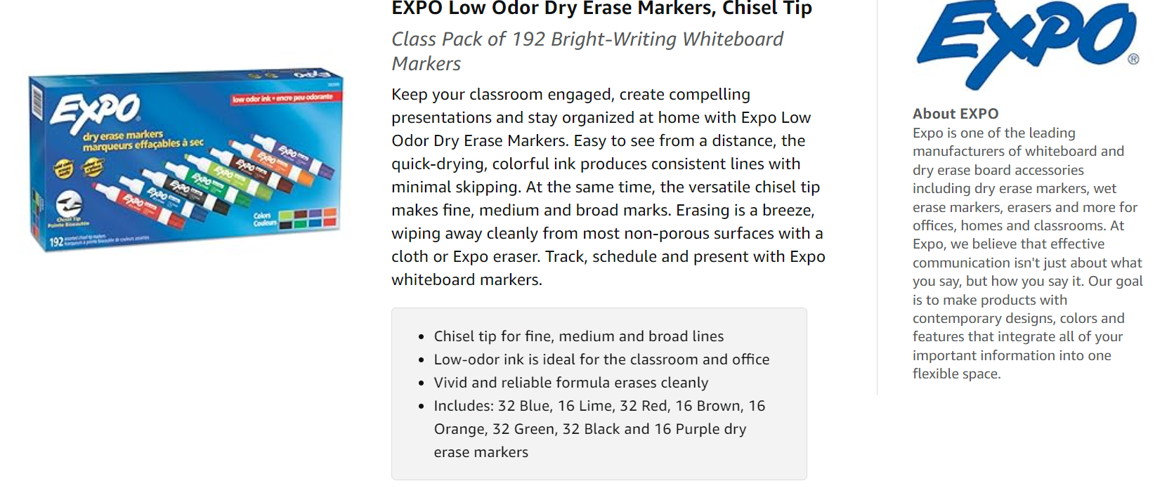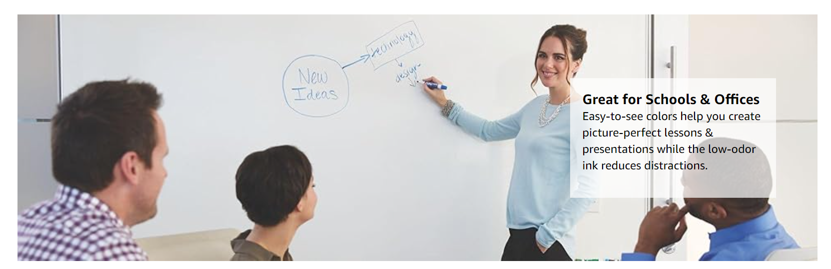 Reliable, easy-to-erase and low-odor to minimize distracting smells, it’s the perfect whiteboard marker for the classroom, office or home.