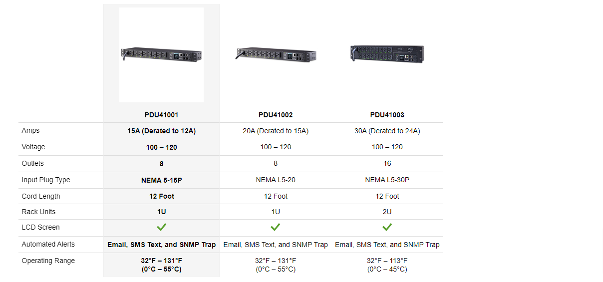 Ensure you are delivering reliable power to network closets and equipment from a variety of power sources, such as uninterruptible power supply (UPS), generators, or utility power source.