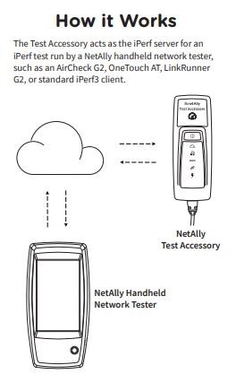 Test Accessory for use with AirCheck G2, EtherScope nXG, LinkRunner G2, or LinkRunner 10G. It can also act as an independent iPerf server. (Operation with LinkRunner G2 requires the use of third-party Android apps for iPerf testing, downloadable from the app store on Link-Live.)