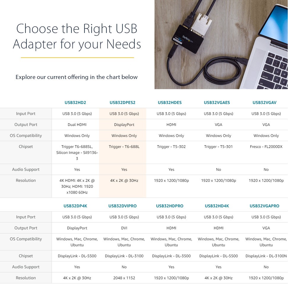 The adapter even supports display rotation for a vertical screen that’s ideal for viewing spreadsheets, newsfeeds or stock tickers.