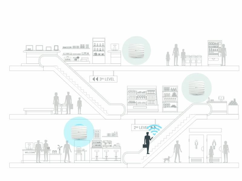 Omada EAPs with Mesh technology*(Omada Mesh requires the use of Omada SDN controllers) saves you from extra wires by wirelessly extending your WiFi signal and optimizing the best path between EAPs.