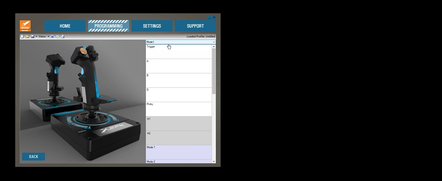 Customize all 13 axes, 5 HATS and 31 programmable buttons over three modes. Adjust deadbands and response curves to fine-tune axes. Assign any button to any number of in-sim commands—even assign mouse and keyboard commands to X56, from single-key inputs to timed and macro commands.