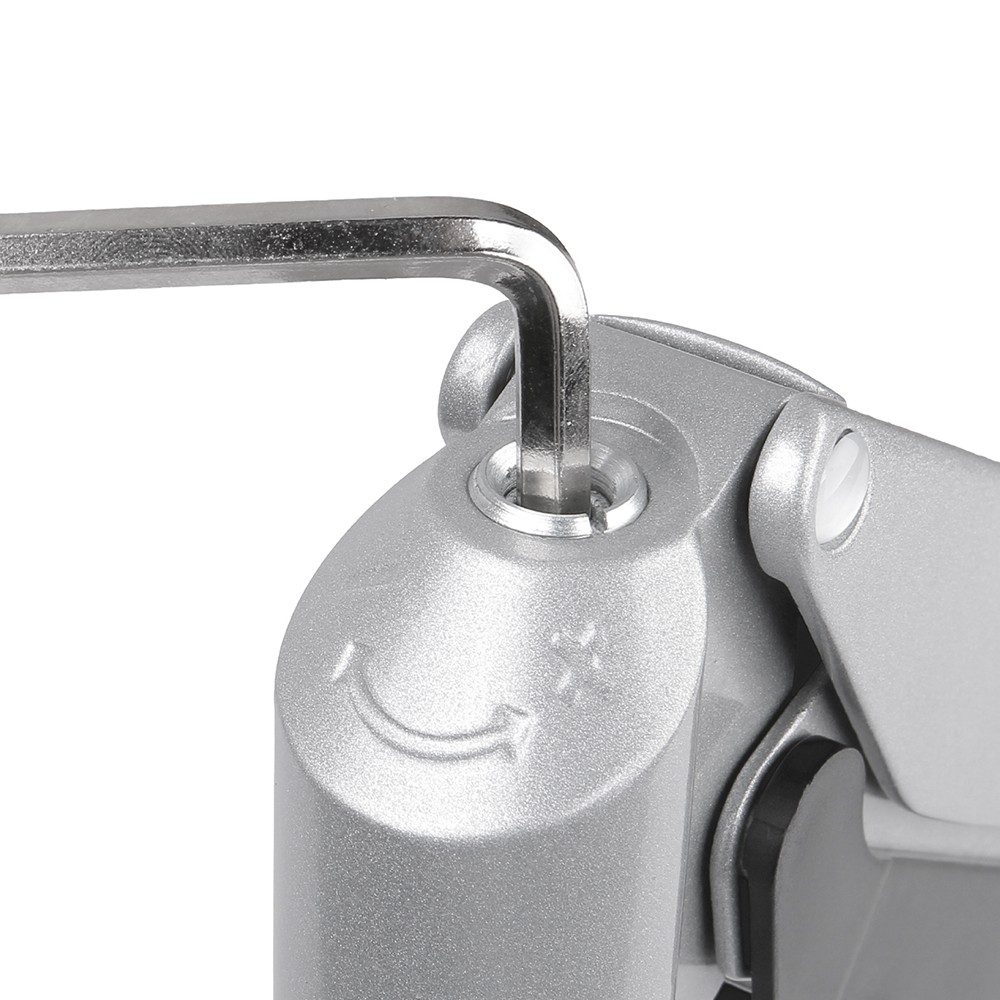 With SIIG's desk mount CE-MT2E12-S1, you can always mechanically adjust the tension of the gas spring. Simply turn the shock five times, then test if the tension is holding the monitor sturdily.
