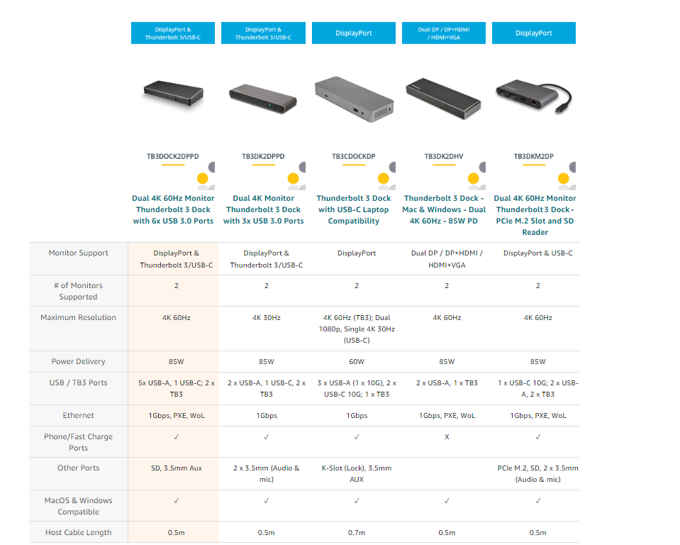 StarTech.com Thunderbolt 3 Dock - Dual Monitor 4K 60Hz TB3 Docking Station with DisplayPort - 85W Power Delivery, 6-Port USB 3.0, SD, GbE