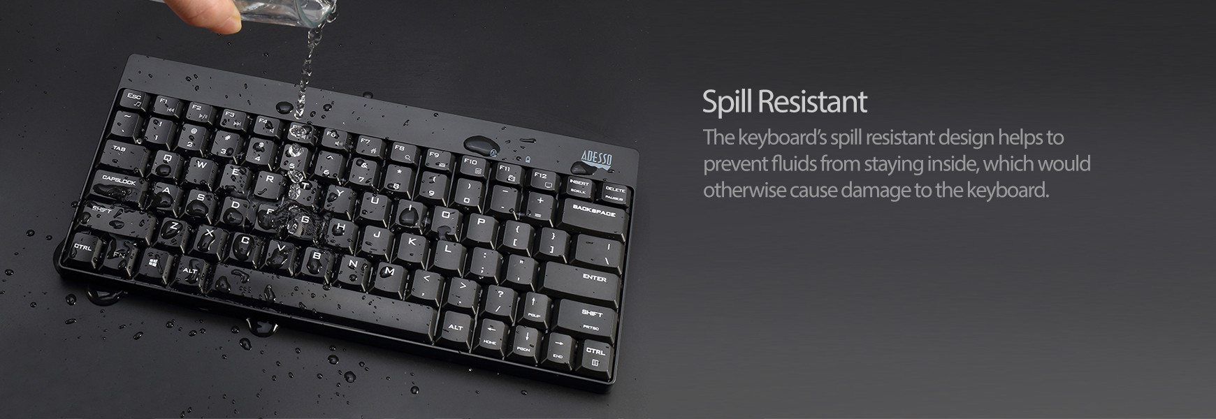 Drain holes in the keyboard prevents damage of accidental water, coke or coffee spill.