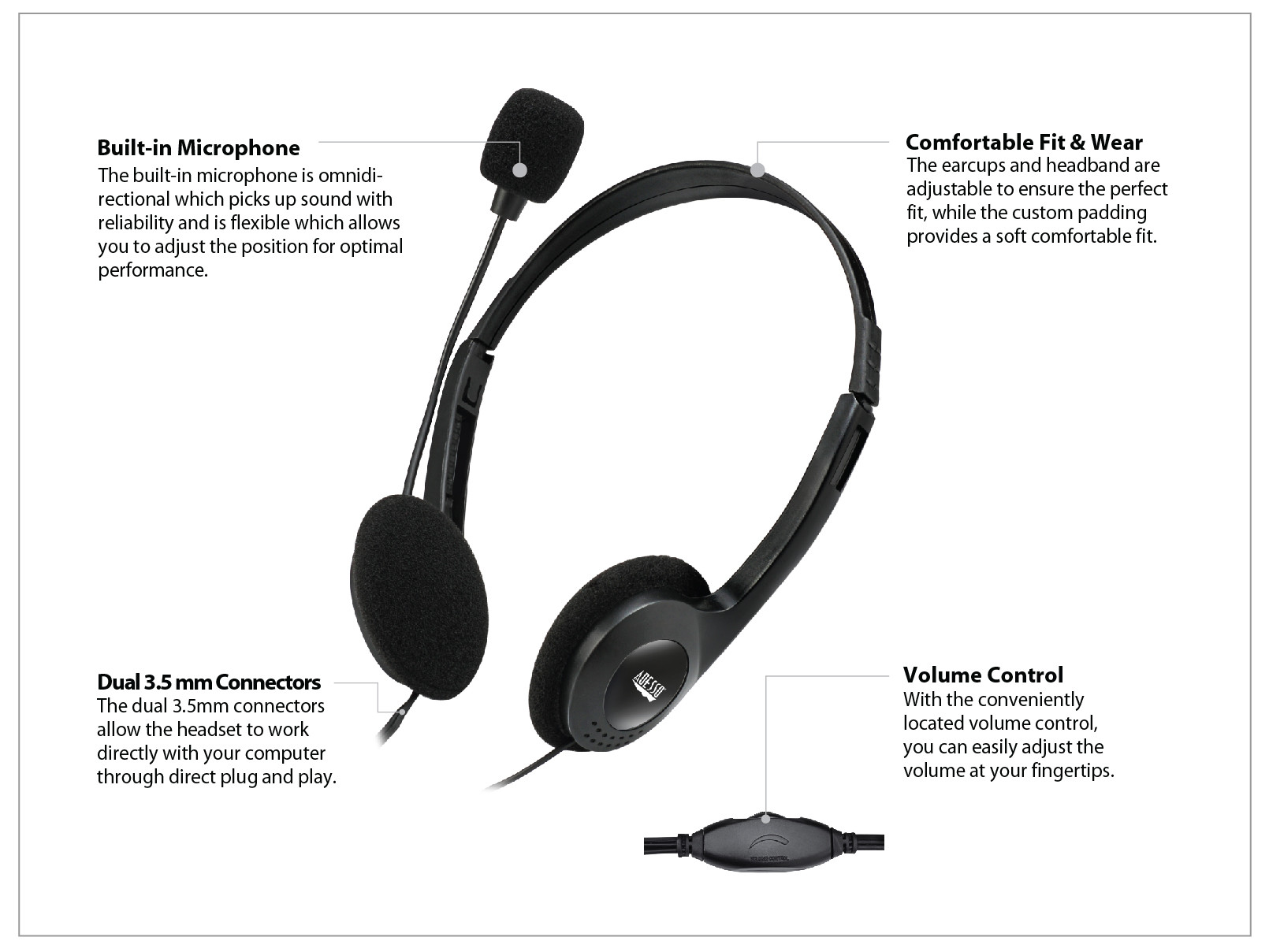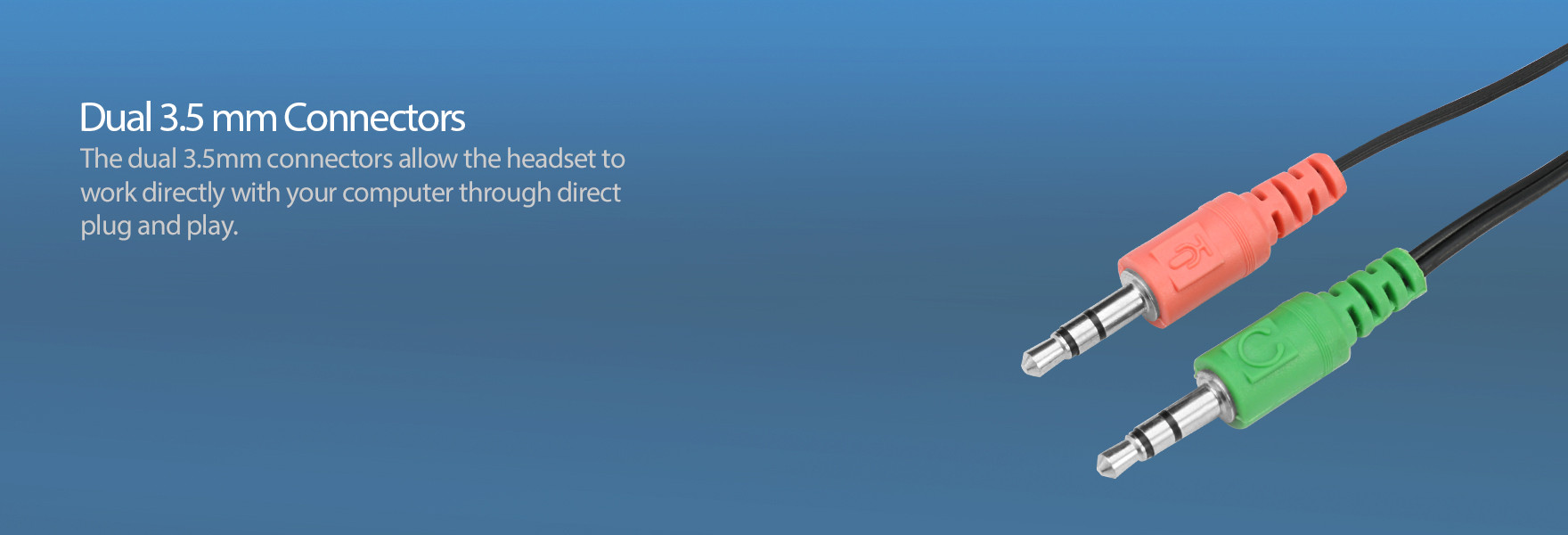 The dual 3.5mm connectors allow the headset to work directly with your computer through direct plug and play.