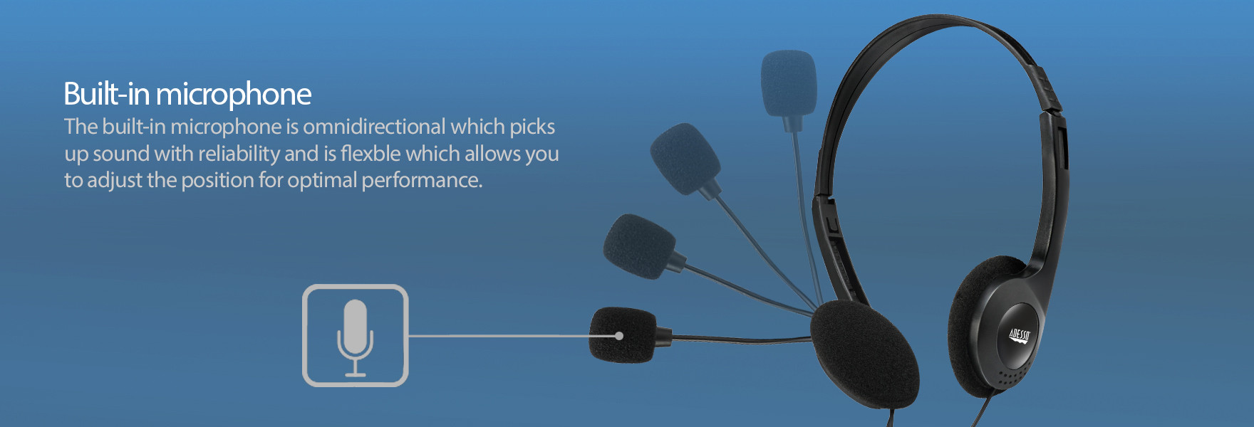 The built-in microphone is omnidirectional which picks up sound with reliability and is flexble which allows you to adjust the position for optimal performance.
