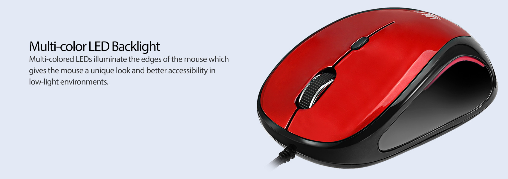Multi-colored LEDs illuminate the edges of the mouse which gives the mouse a unique look and better accessibility in low-light environments.