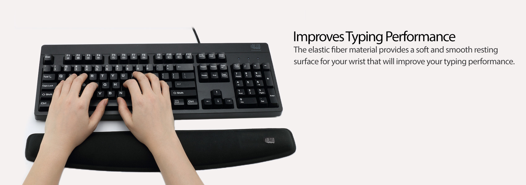 The elastic fiber material provides a soft and smooth resting surface for your wrist that will improve your typing performance.
