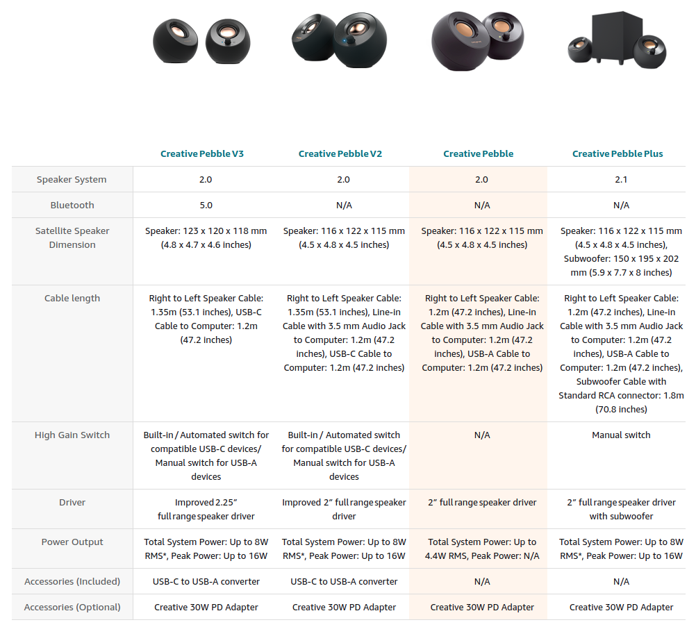 Measuring at only 11 centimetres wide each, the Creative Pebble can be conveniently placed next to your PC monitor without compromising on valuable desk space. What's more, the Pebble is conveniently powered by a single USB cable without the need for a wall outlet.