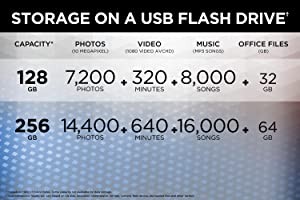 The amount of capacity you need depends on the types and number of files you have and their size. The chart above gives you an idea of how many photos, videos, and music and office files you can store for each capacity.