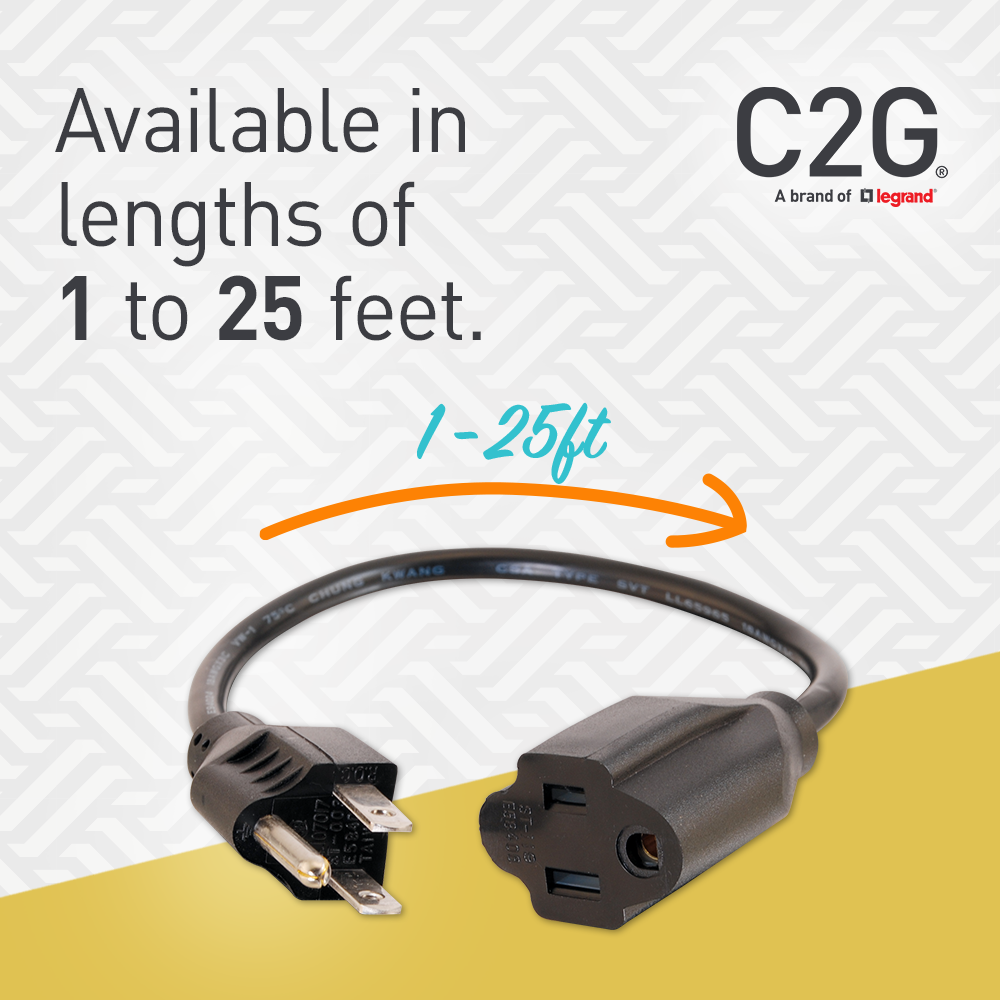 Extend powered devices away from wall outlets, durable, heavy-duty construction, available up to 25ft.