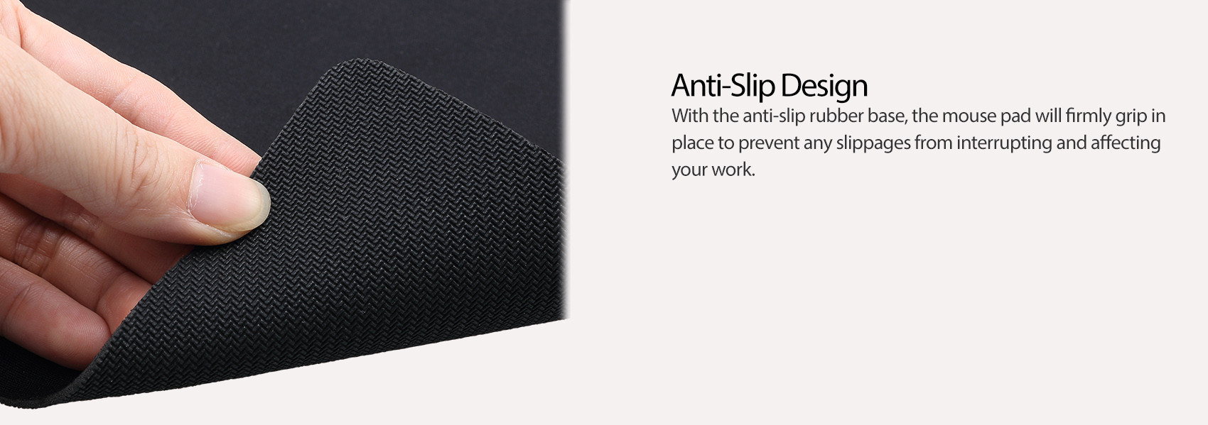 Anti-Slip With the anti-slip rubber base, the mouse pad will firmly grip in place to prevent any slippages from interrupting and affecting your work.