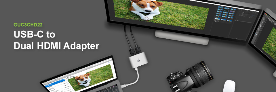 Connect the IOGEAR USB-C to Dual 4K HDMI Adapter to expand your USB-C enabled laptop for a ready-connection to two 4K HDMI displays.