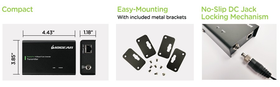 The Cinema 4K DisplayPort HDBaseT-Lite Extender is designed with the professional AV installer in mind. The compact, all metal Extender is easily mounted in an AV rack, enclosure or cabinet and features a no-slip DC jack locking mechanism for enhanced reliability.