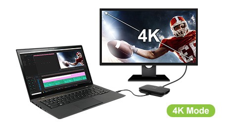Experience the remarkable visuals of 4K, at four times the resolution of standard HD. The Portable Dock's dual monitor functionality supports crystal clear video quality to 4096 x 2160 for a higher level of enjoyment while streaming movies, playing video games or working and creating from your office. Get full 1080p HD quality video when using a dual monitor setup.