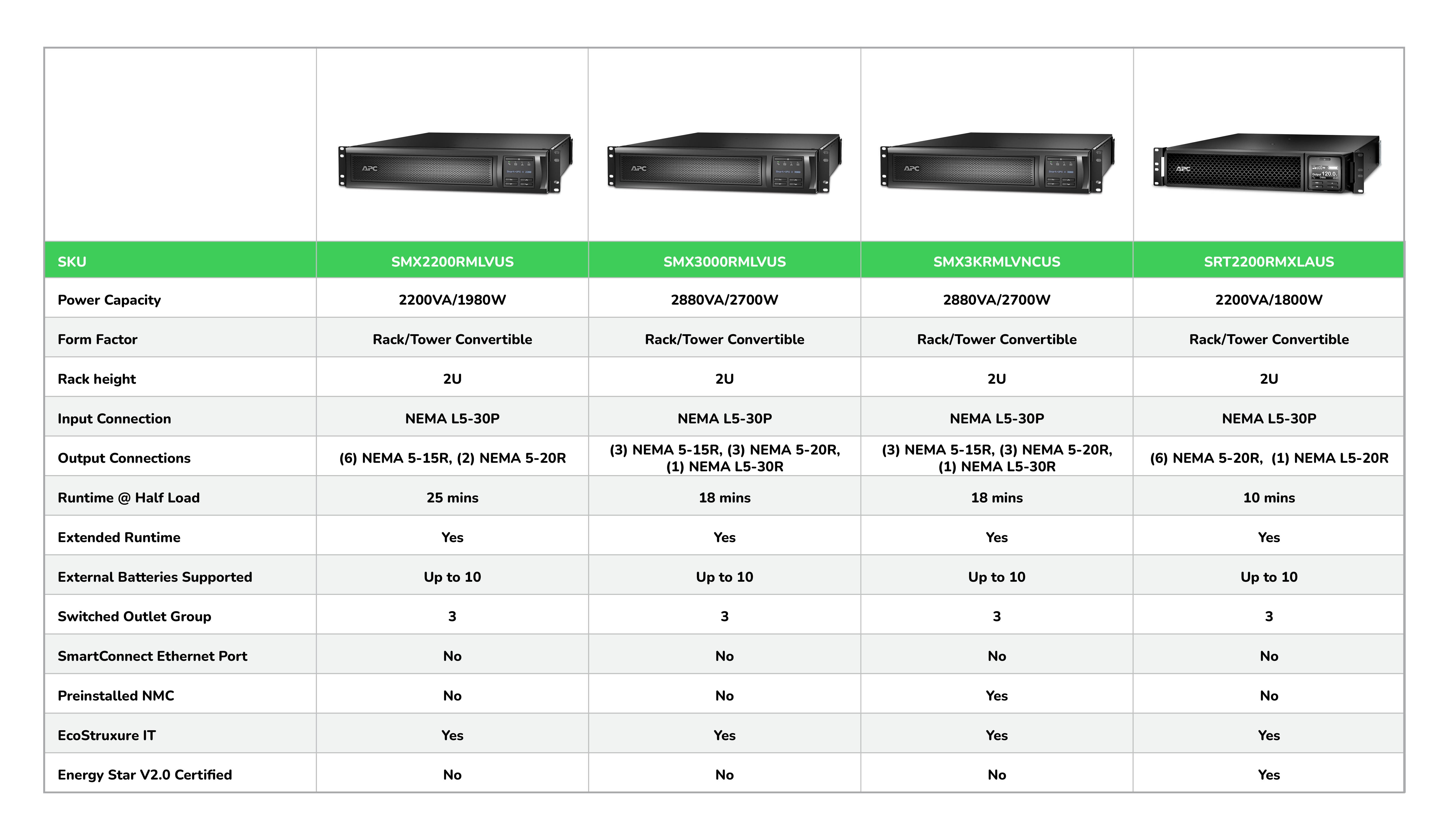 APC’s patented ‘green’ mode bypass components that perform AVR when not needed. This results in higher efficiencies across a wide range of load conditions.