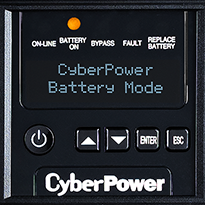 Displays 24 real-time UPS status values, 27 configurable operation settings, and an event log from up to 10 ft. away (DB26 cable not included). The LCD control panel displays and allows configuration of IP address settings when a remote management card is installed.
