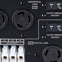 Critical Load outlet group is always ON. Non-Critical Load outlet group can be manually turned OFF/ON. Or, it can be configured with an OFF delay when there is a power outage and an ON delay when power is restored.