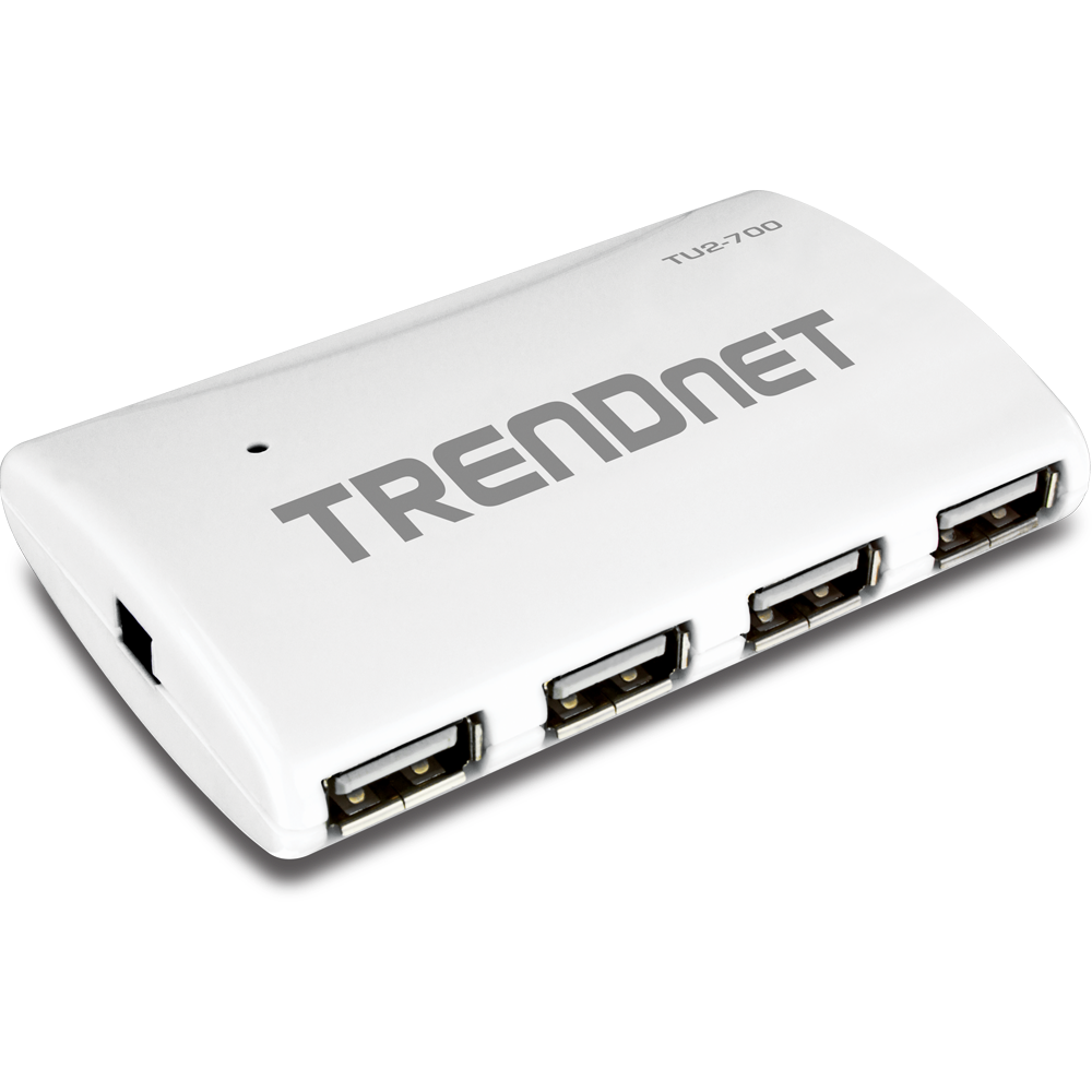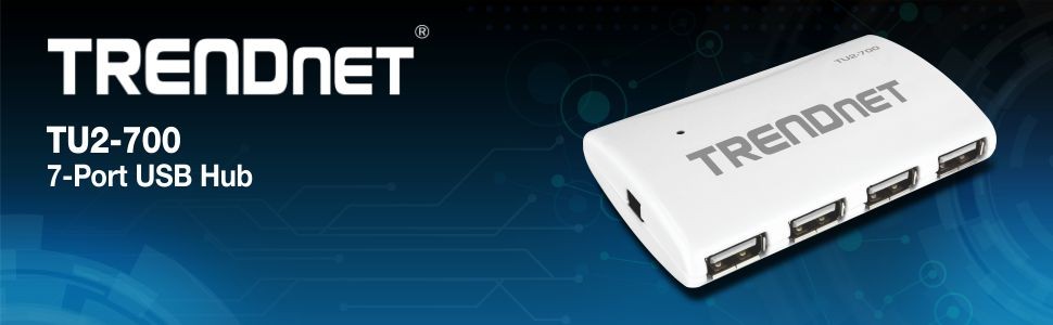 TRENDnet's 7-Port USB Hub, model TU2-700, adds seven high-speed USB 2.0 ports to your computer for connecting USB devices such as USB cameras, memory sticks, printers, and more. No CD installation is required, just plug the TU2-700 into your computer and connect your devices to share data via a high-speed 480Mbps connection.