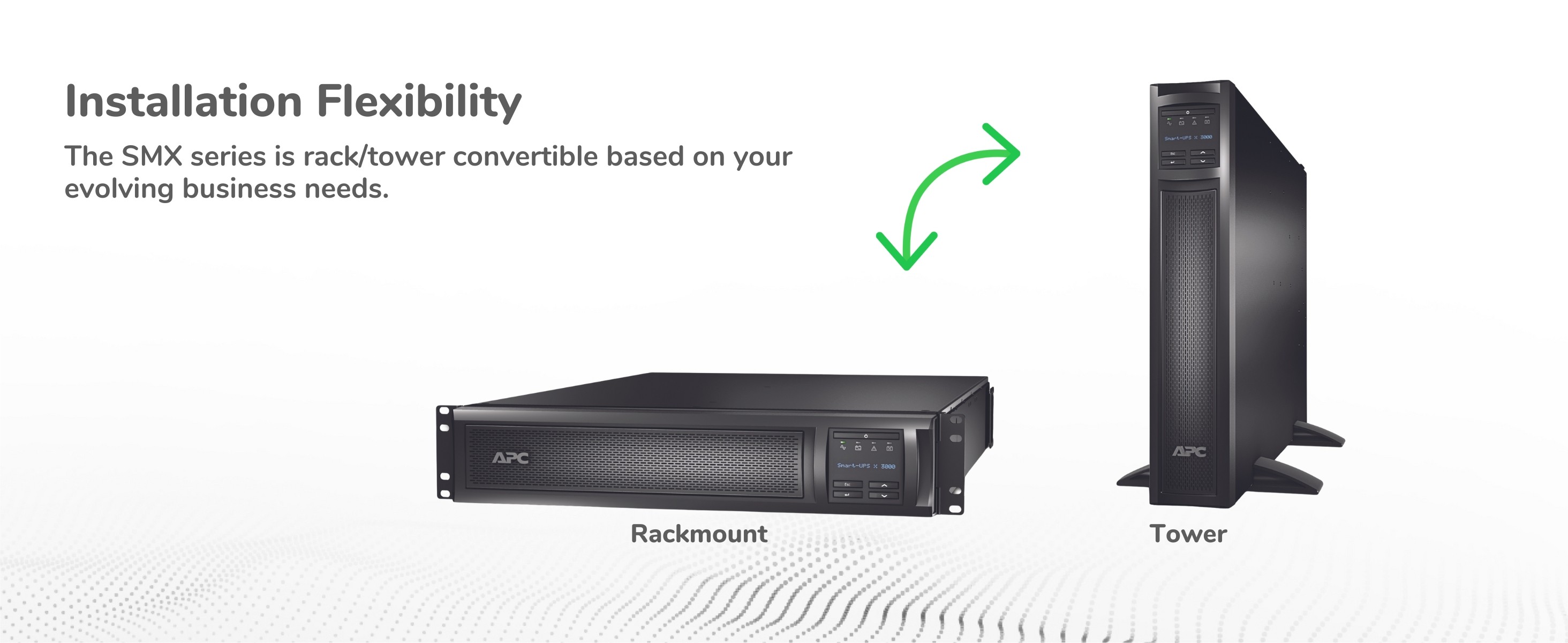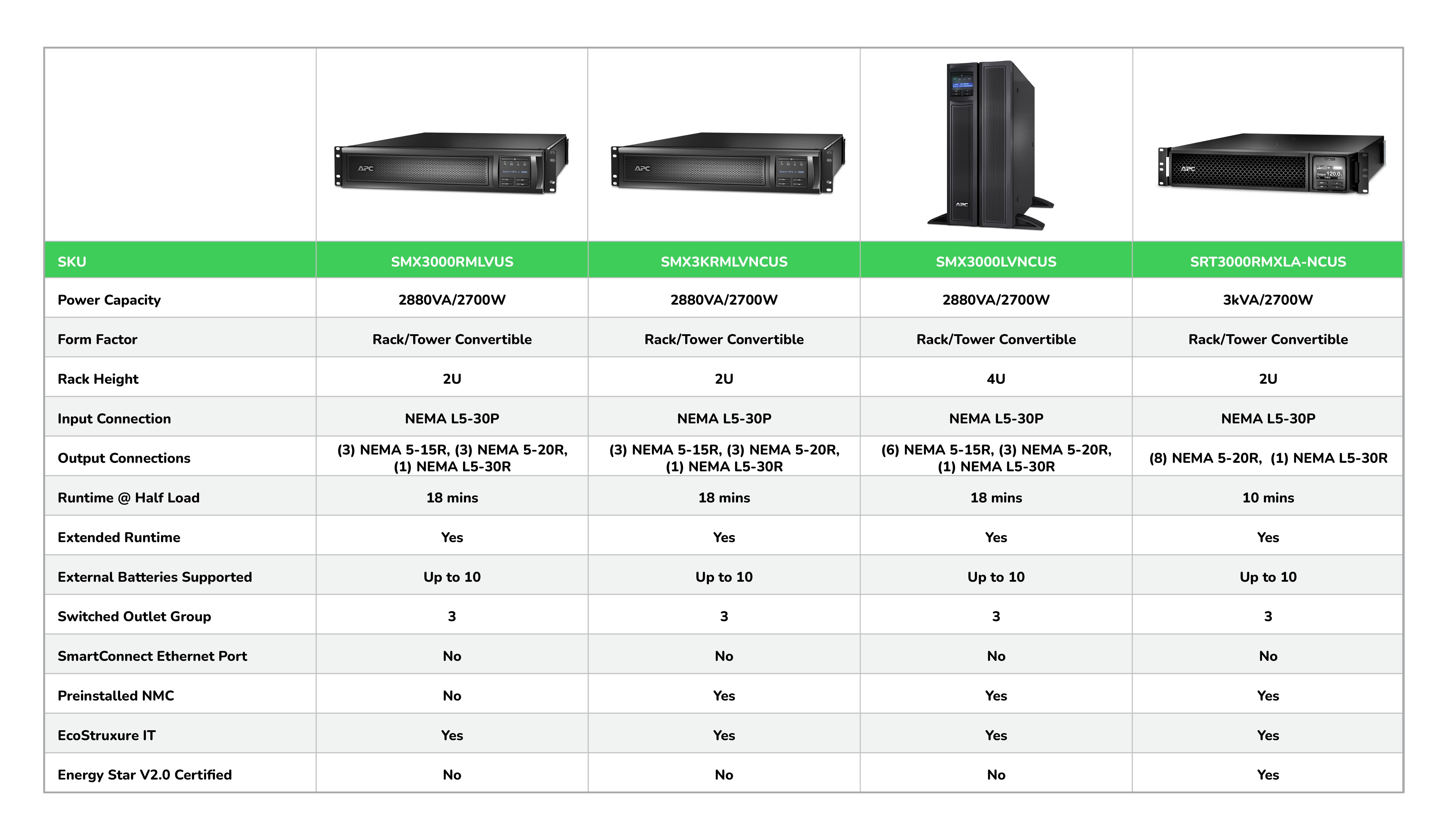 APC’s patented ‘green’ mode bypass components that perform AVR when not needed. This results in higher efficiencies across a wide range of load conditions.