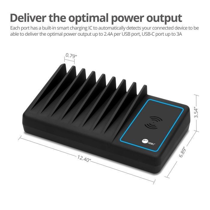Power and charge up to 10 USB-powered devices and 1 Qi wireless enabled smartphone simultaneously