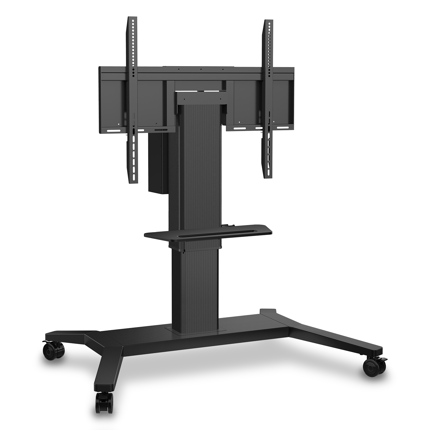 VB-STND-003 motorized trolley cart securely accommodates ViewSonic 55”, 65”, 75”, and 86" ViewBoard