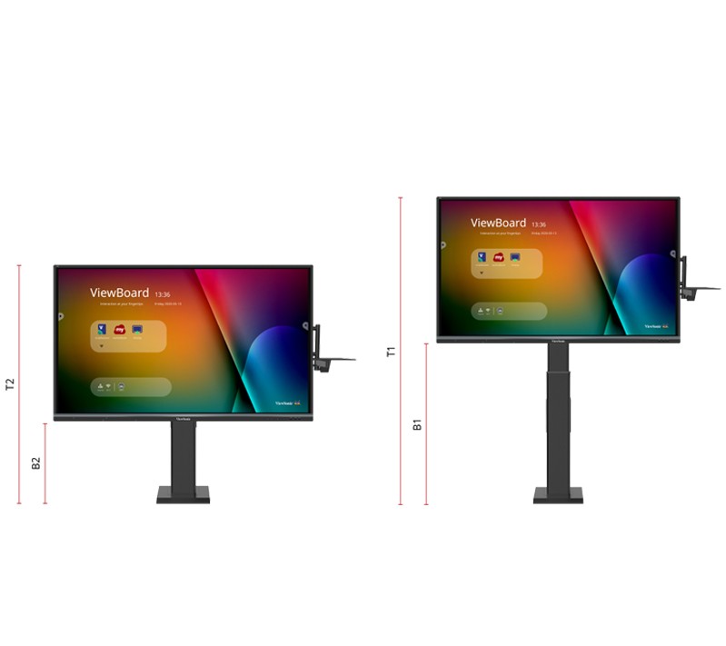 Featuring smooth motorized lift, the ViewSonic® VB-STND-004 motorized fixed stand securely accommodates VESA compatible displays ranging from 55” to 86" screen sizes and weighing up to 220 lbs. With integrated on-screen control, the floor mount can be manipulated directly from the ViewBoard touchscreen (IFP50 series only), allowing you to easily raise or lower the display with a single tap. A sturdy design ensures that the stand stays upright when secured and bolted to the floor. This product is ADA compliant.