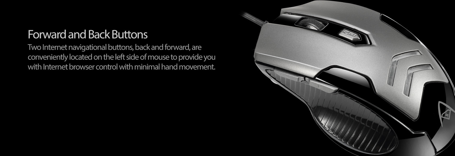 Two Internet navigational buttons, back and forward, are conveniently located on the left side of mouse to provide you with Internet browser control with minimal hand movement.