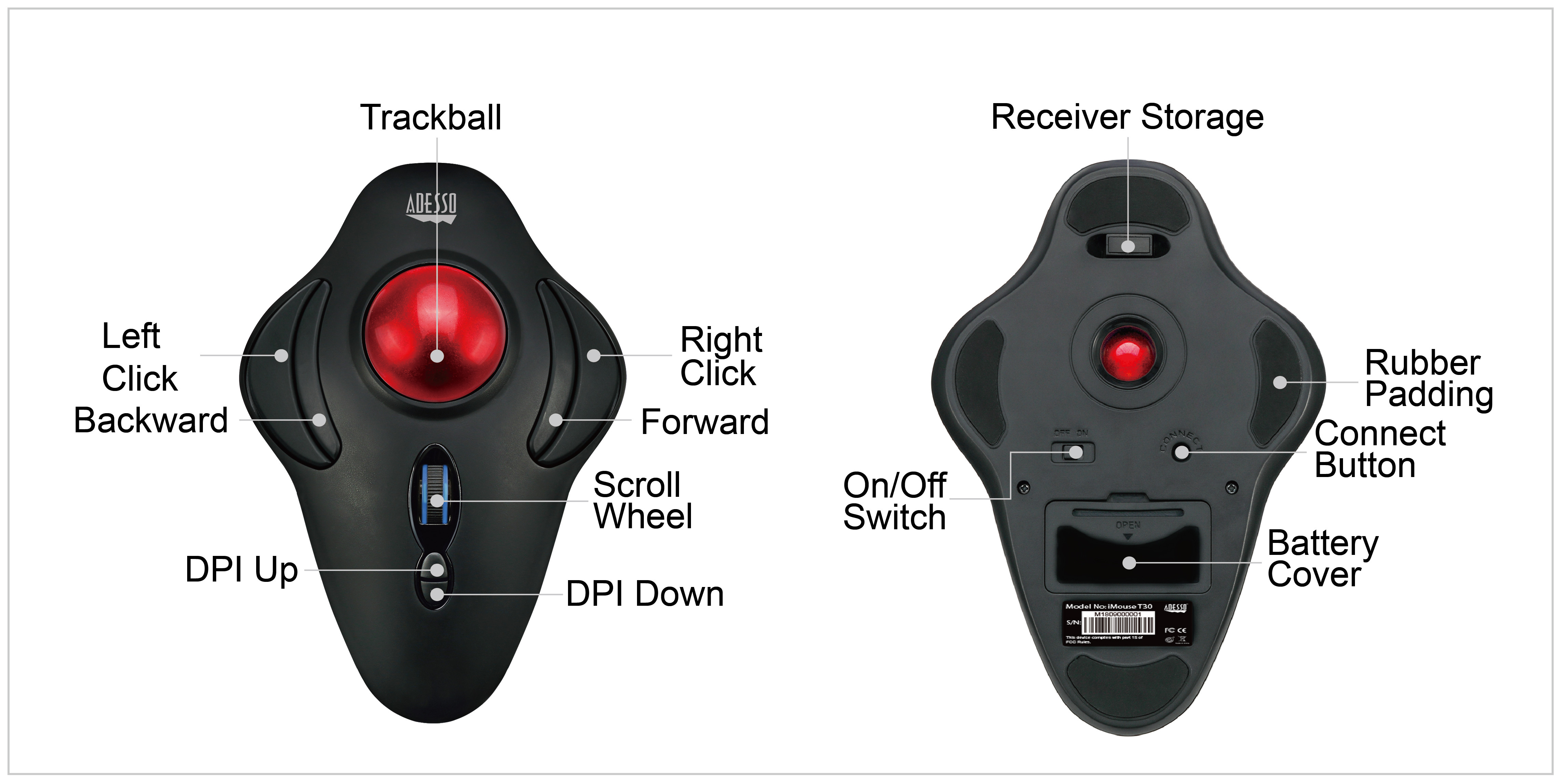 Built-in 1.5″ (40mm) Trackball with Optical Sensor