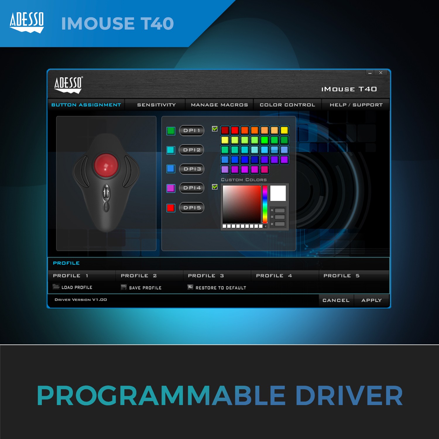 The programmable driver has a friendly user interface that lets you change lighting options, different button assignments, DPI Sensitivity, and macros to each of the buttons.