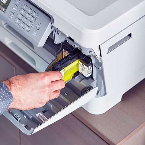 (1) Based on average monthly print volumes of approximately 300 pages at 60% black pages / 40% color pages in accordance with ISO/IEC 24711 using 4 cartridges provided in-box. For more page yield information, see www.brother.com/pageyield.