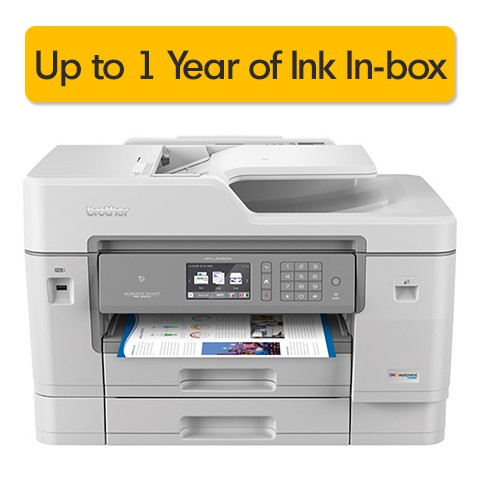The Brother MFC-J6945DW INKvestment Tank color inkjet all-in-one printer with tank technology delivers reliable performance, enhanced productivity and professional results - perfect for small businesses and home offices. High-capacity INKvestment Tank cartridges along with an internal ink storage tank and an intelligent Page Gauge(3) help to deliver convenient, uninterrupted printing for up to 1-year(1) without the need to purchase ink. Business-capable features help increase productivity with 11”x17” ledger print, copy, scan and fax, single-pass duplex copying & scanning and cloud printing & scanning directly from the touchscreen(2). With INKvestment Tank all-in-one printers, you get the great features, convenience and affordability you need without the worry about your printer running out of ink.