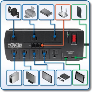 This surge protector is perfect for home and office electronics of all kinds, including computers, monitors, printers, wireless routers, televisions, video game consoles, streaming media players, sound systems, device chargers, DVRs, fax machines, broadband modems, desk lamps and small appliances. It also provides convenient USB charging power for smartphones, tablets and other devices.