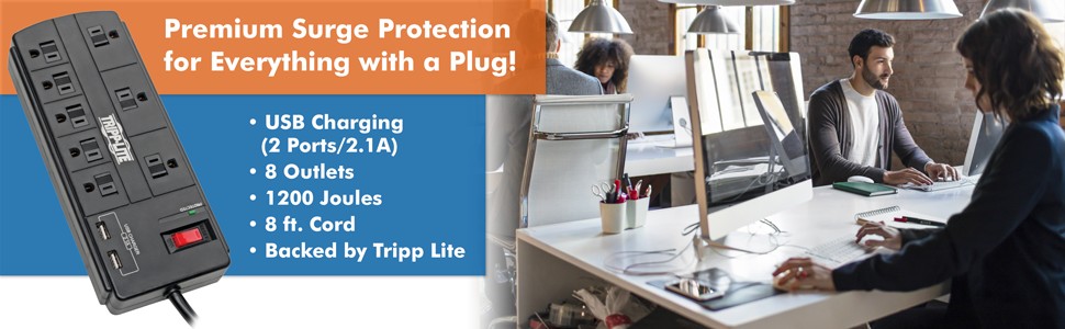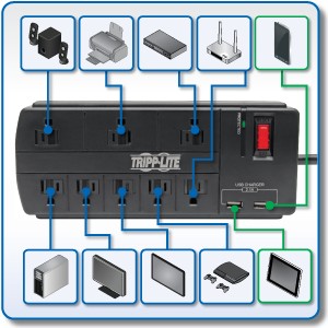 This surge protector is perfect for home and office electronics of all kinds, including computers, monitors, printers, wireless routers, televisions, video game consoles, streaming media players, sound systems, device chargers, DVRs, desk lamps and small appliances. It also provides convenient USB charging power for smartphones, tablets and other devices.
