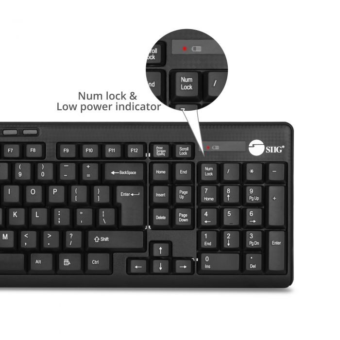 Ultra compact 2.4GHz USB wireless receiver allows up to 33ft wireless range (line-of-sight) for both keyboard and mouse
