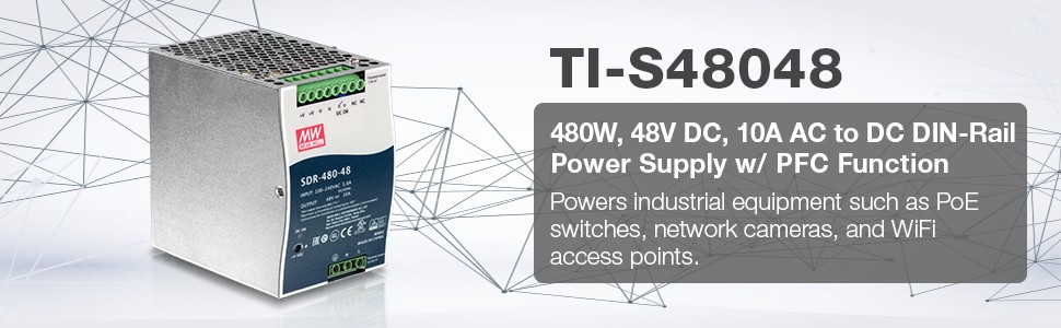 Provides up to 480W (48V DC, 10A) of power for PoE devices such as switches, network cameras, and access points
