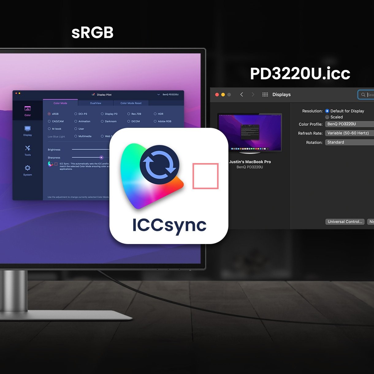 BenQ ICCsync auto-matches and auto-synchronizes ICC profiles on the monitor when you change color modes, and also between your Mac and BenQ monitor. All of this is done instantly.