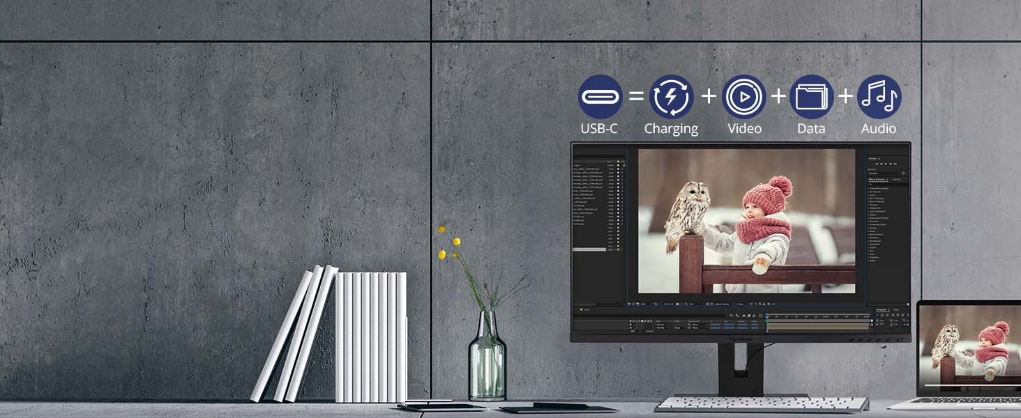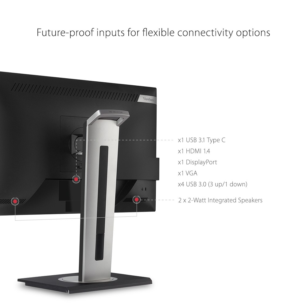 Designed for the modern day office, the ViewSonic ® VG2755-2K monitor delivers an efficient end-to-end enterprise experience. USB Type-C connectivity provides charging power, data, video, and audio over a single connector for convenience and reduced cable clutter. SuperClear ® IPS panel technology delivers wide-angle viewing and incredibly vivid colors, while 3-sided thin bezel design provides a seamless viewing experience for multi-monitor setups. For enhanced productivity, an advanced ergonomic design offers a wide range of customizable adjustments for maximum comfort including pivot, swivel, height adjustment, and tilt. With the ability to tilt an impressive 40-degrees, this 27” monitor is ideal for users who prefer to work while standing up, as well as for those who like to use their screen for group discussions. Along with USB Type-C, additional connectivity options include HDMI, DisplayPort, and USB. This monitor is also shipped in eco-friendly biodegradable packaging, along with an easy-to-install quick release stand that makes for simple out-of-the box setup. The quick release stand also includes an integrated client mount and cable management features.
