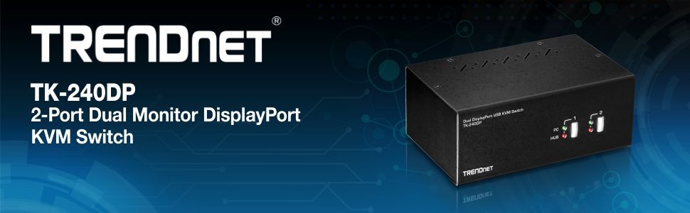 TRENDnet's 2-Port Dual Monitor DisplayPort KVM Switch allows you to control two computers with one set of console controls. The TK-240DP is designed for dual monitor systems with USB mouse and keyboard connections; it also includes a bonus two-port USB hub. Experience up to 4K UHD resolutions with TRENDnet’s TK-240DP.