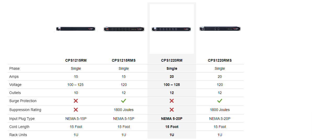The NEMA 5-20P plug with 15-foot power cord reaches distant power sources, allowing the PDU to be placed where it’s needed.